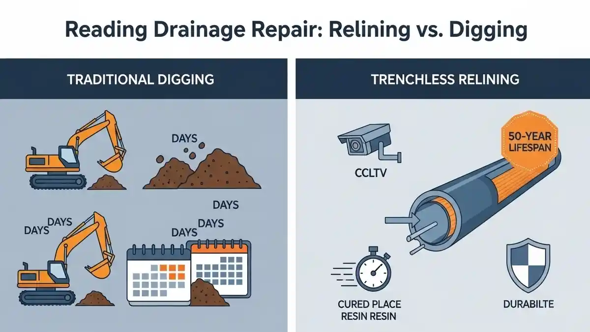 Avoid costly, messy excavations. Compare Morden Drain Relining vs Digging to save your home, time, and money with our expert, minimally invasive, and durable no-dig repair solutions for local drains.